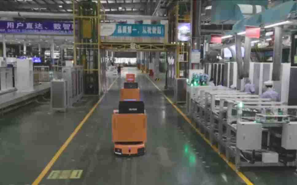 为车载冰箱物流配送打造的智能解决方案,,包含产中物流通过潜伏举升AMR搬运至线边,,产后成品物流智能仓储,,,流程包含产中物流智能齐套入库,,,线边安灯叫料AMR智能配送至线边,,,,成品入库、、、、出库,,通过无人堆高车机器人,,智能仓储管理替代人工作业管理,,,实现更高存储、、、更高效率、、更具柔性化的解决方案。。。。